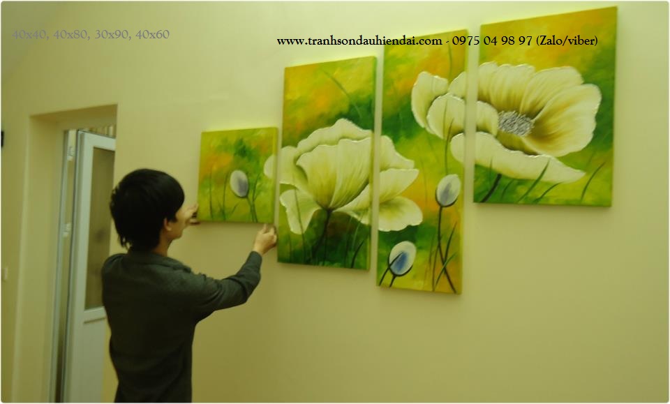 c - Nên tùy mệnh của mình mà treo các loại thuộc Thủy, Hỏa, Mộc... Nhưng tốt nhất là tranh sơn thủy mùa xuân, hoa cỏ tươi thắm, treo phía tay trái hoặc phương Đông theo hướng ngồi ở phòng khách, phòng làm việc; tâm kinh, chữ Phật có thể treo phòng ngủ.