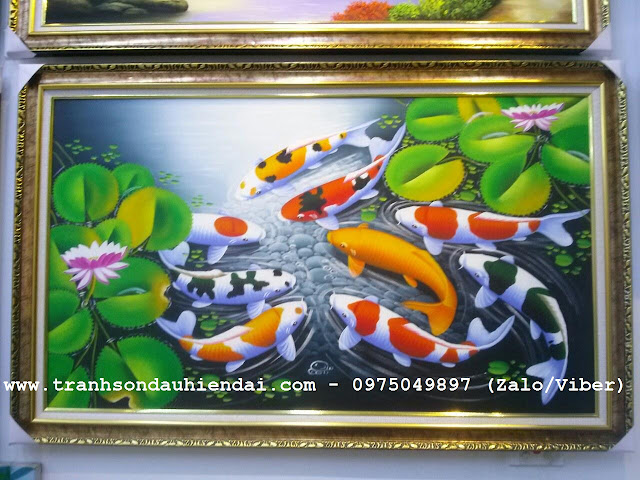 a-Tranh liên quan đến cá chép là thích hợp, nhất là Cửu ngư đồ (9con cá chép), tiếp đến là tranh sơn thuỷ, tùng bách, trúc, mai…