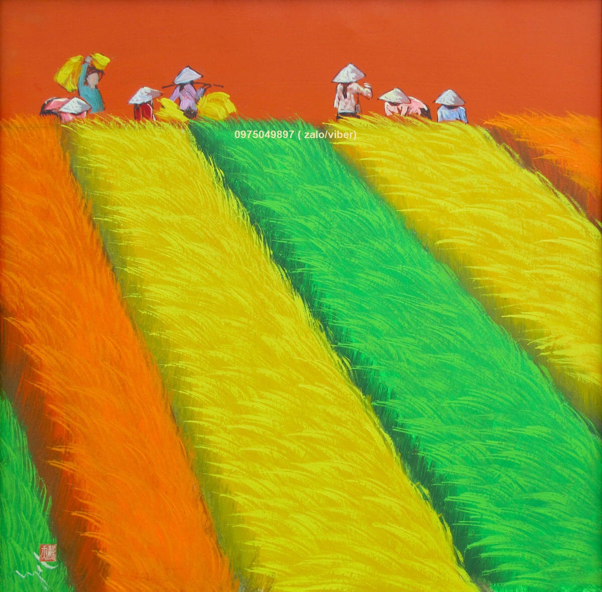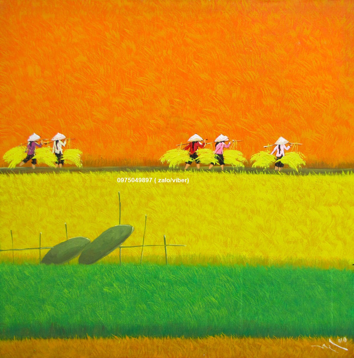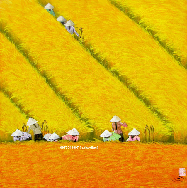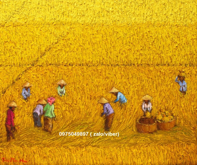 Mùa gặt ở quê được các họa sỹ tranhsondauhiendai.com tái hiện lại một cách sinh động và nghệ thuật qua đôi bàn tay tài hoa của người thả hồn vào bức tranh quê hương.
