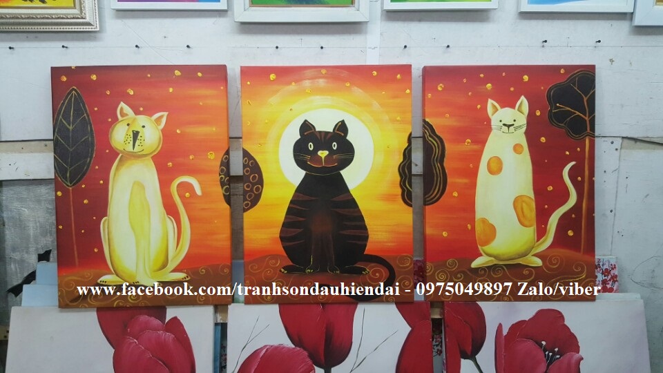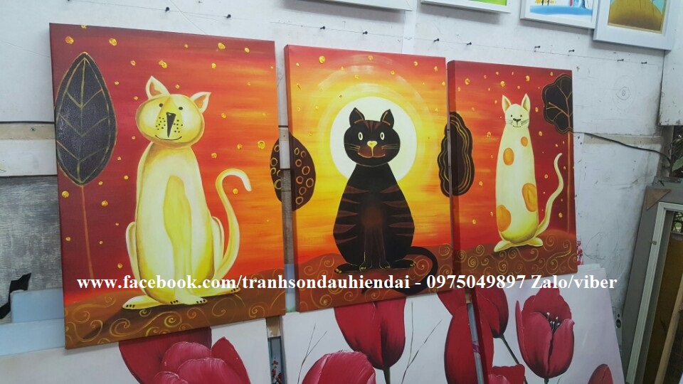 Tranh bộ con mèo, tranh vẽ con mèo , tranh sơn dầu con mèo